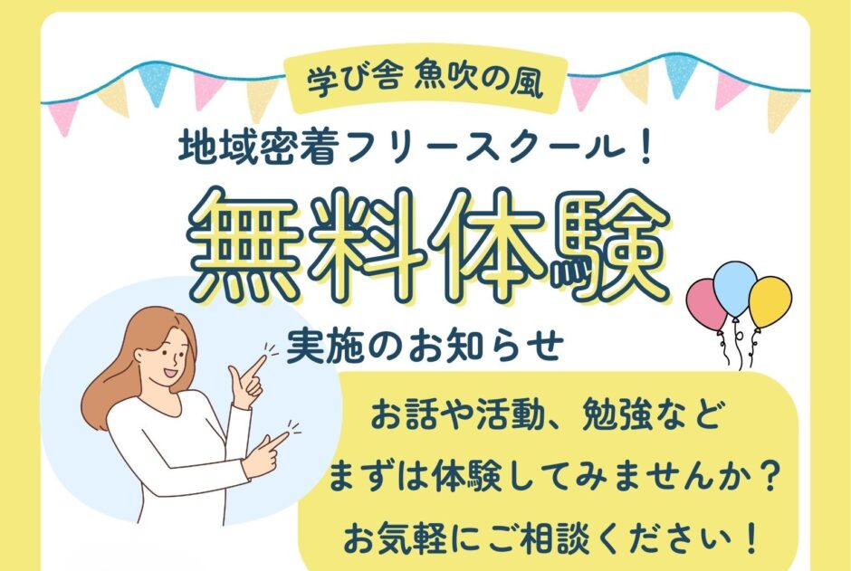 ホームイベント 無料体験キャンペーン 2026/02/02~03/27 2026年1月8日2026年2月3日 SHARE ポスト シェア はてブ LINE 無料体験実施のお知らせ ~最大6回までご利用可~ 以下の内容で無料体験を実施します。お気軽にご相談ください! 実施期間:2026年2月2日~3月27日 平日の10時から15時の間で応相談 時間や内容については個別のプランを一緒に考えます。 お一人様、最大6回までご利用いただけます。 お電話またはお問い合わせボタンからからお申込みください。 チラシはこちらからダウンロードできます。 無料体験チラシ