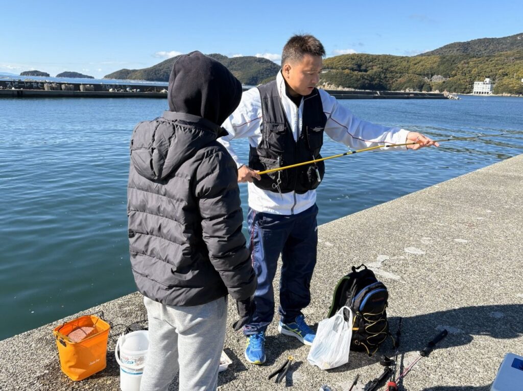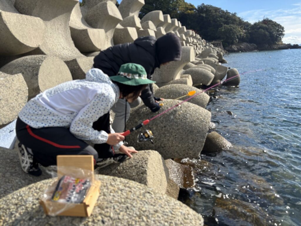 11月19日(水)室津漁港へ魚釣りに出かけました。秋晴れのもと、潮の香りを感じながらの活動に心と体を動かすことができました。狙いは、ガシラ(カサゴ)とアジ。カサゴはテトラポットの隙間に糸を垂らし、穴釣りという釣法です。アジはサビキ釣りで大漁を期待します。