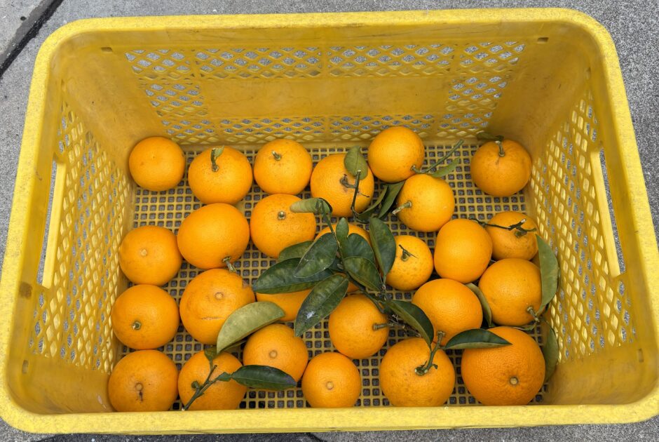 長い枝切りばさみに苦戦しながらも、手際よく収穫することができました。採れたみかんはご近所やお世話になった方々へプレゼントし、残りは調理実習でジュースやマーマレードジャムを作ります!